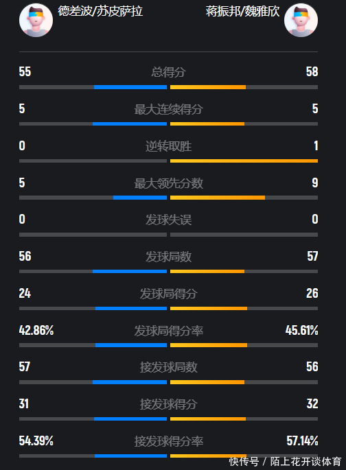 蒋振邦/魏雅欣和德差波/苏皮萨拉齐是现在羽坛的顶尖混双组合,这也省略从两边的天下名次看出来,兴邦组合高居第二,而泰国王牌也名顺序五,固然蒋振邦/魏雅欣的名次更高,可是他们这一场比赛决不成有任何顺心的厚谊,原因也相称浅薄,那便是在两边独逐个次径直对话中,是德差波/苏皮萨拉笑到了临了,那是在本赛季的马来西亚公开赛上,那时兴邦组合只屈膝了31分钟,就以0-2输球停步八强。